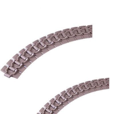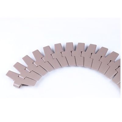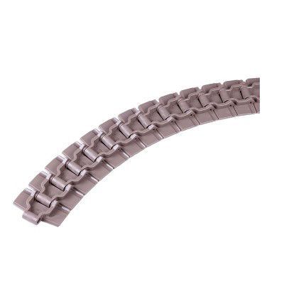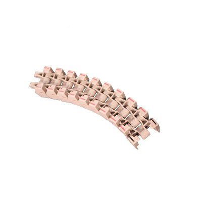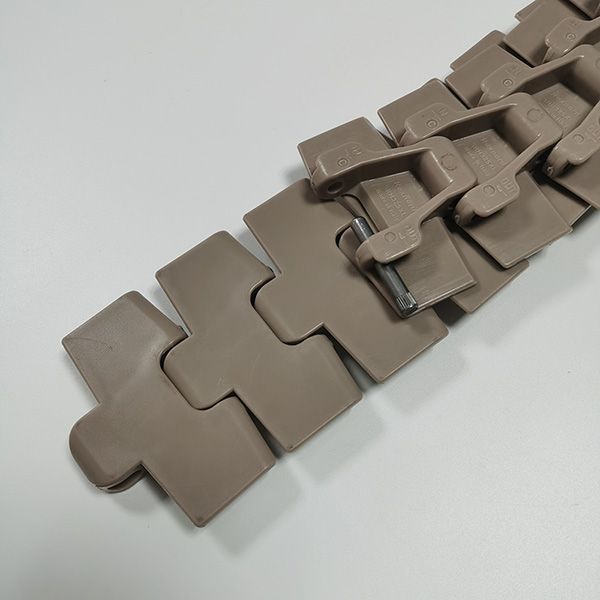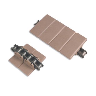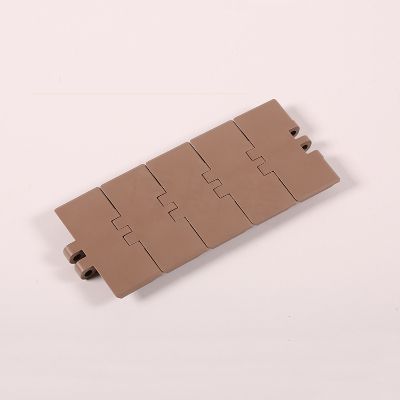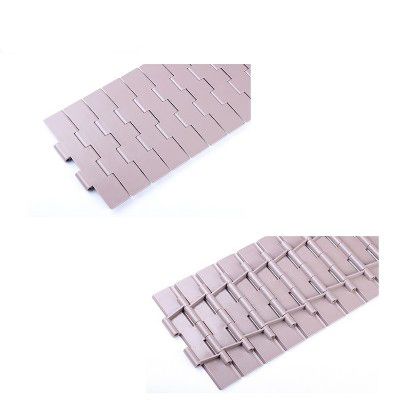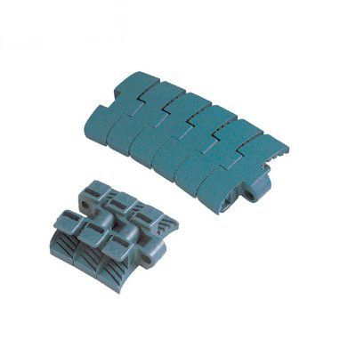 主要適用在各種食品、飲料、保持瓶、鋁罐,以及各類容器之輸送材質為POM,顏色咖啡色,適用溫度-40℃-+90℃。銷軸材質為:冷扎奧氏體不銹鋼。速度:80米/分鐘潤滑劑50米/分鐘乾燥劑。工作載荷(21°C)為1230N,輸送長度為12米